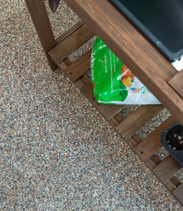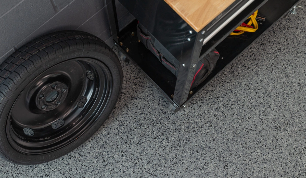 Epoxy garage floor systems combine durability with a decorative flake finish that hides small imperfections in the concrete. The result is a textured surface that looks modern, feels solid underfoot, and stands up to everyday garage use.